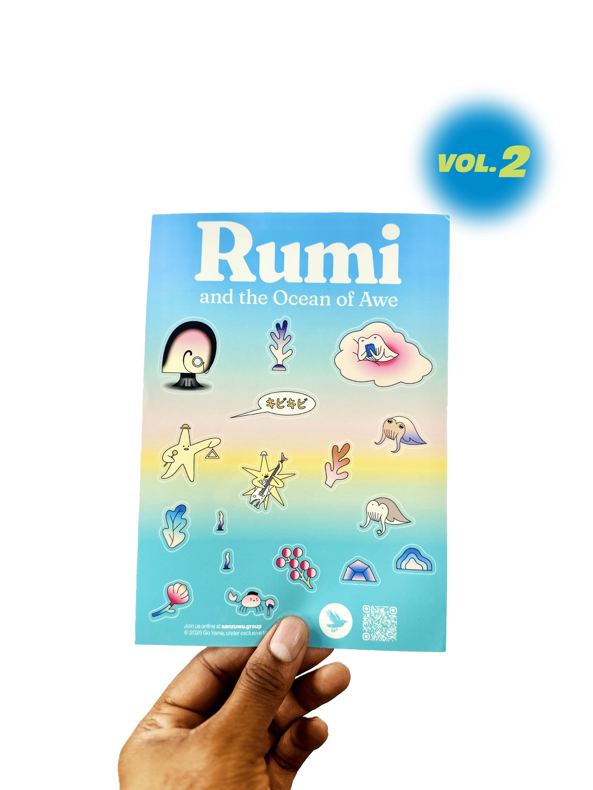 Sticker sheet full of gorgeous full colour illustrations taken from the pages of Rumi and the Ocean of Awe by Go Yama.
